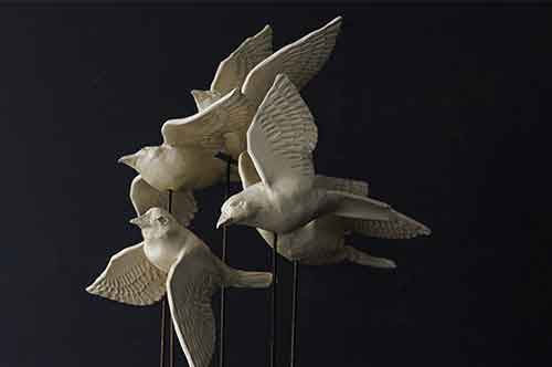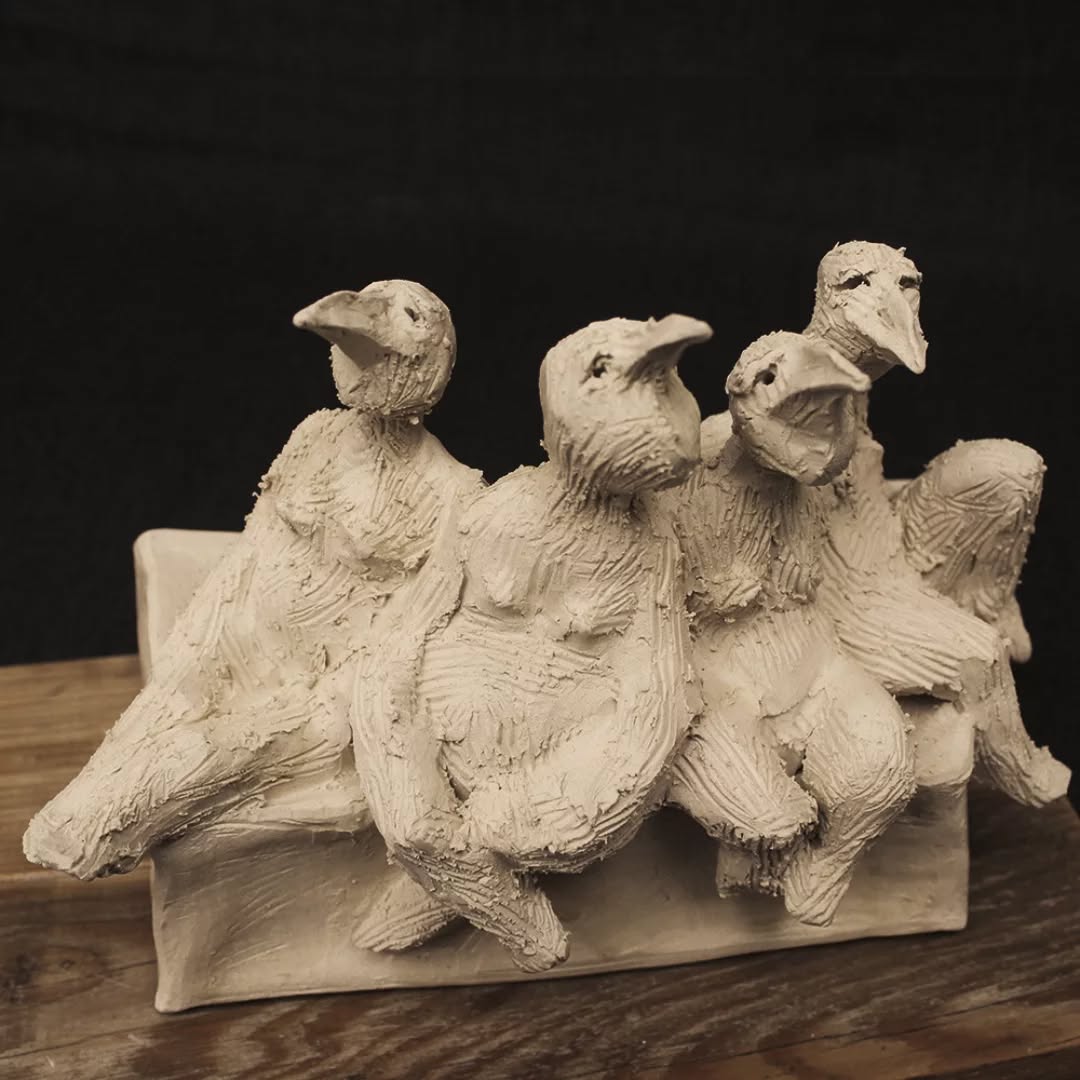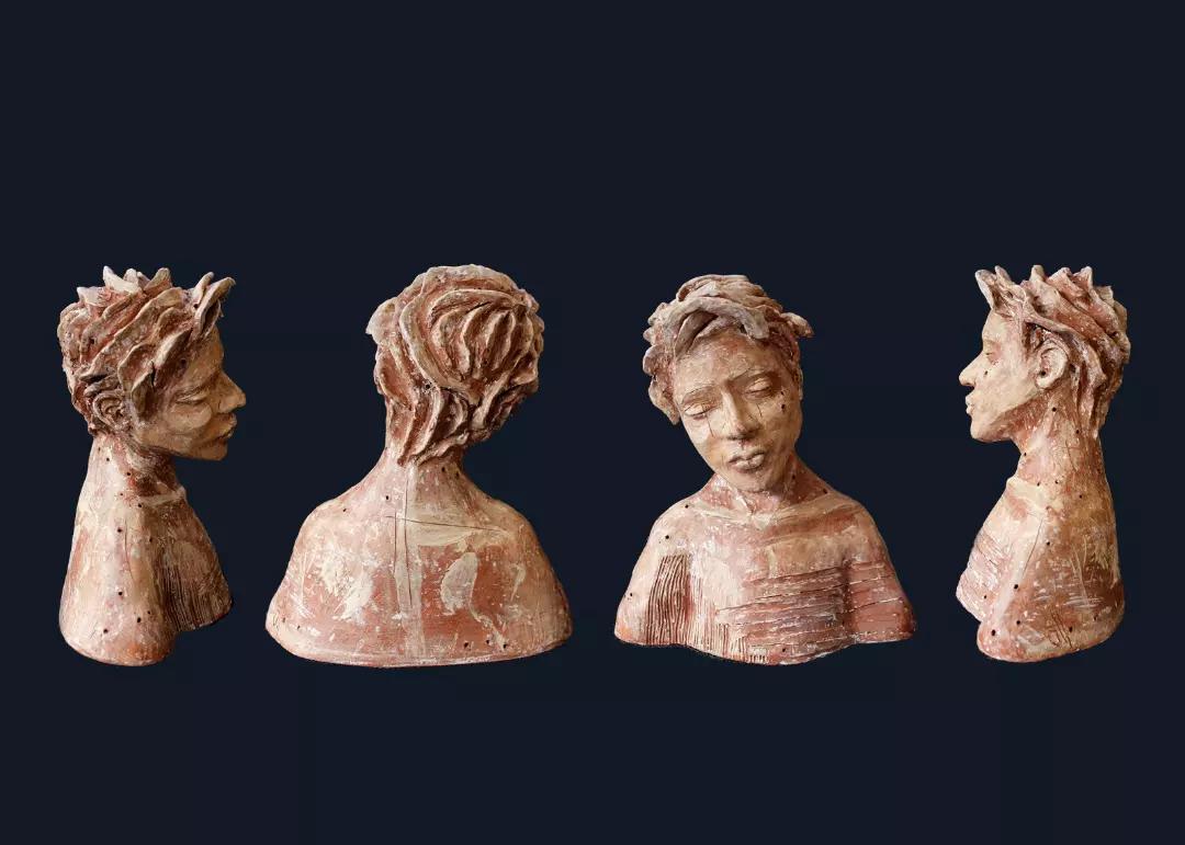Les sculptures comme les séries d'objets sont réalisées en grès (terre haute température).