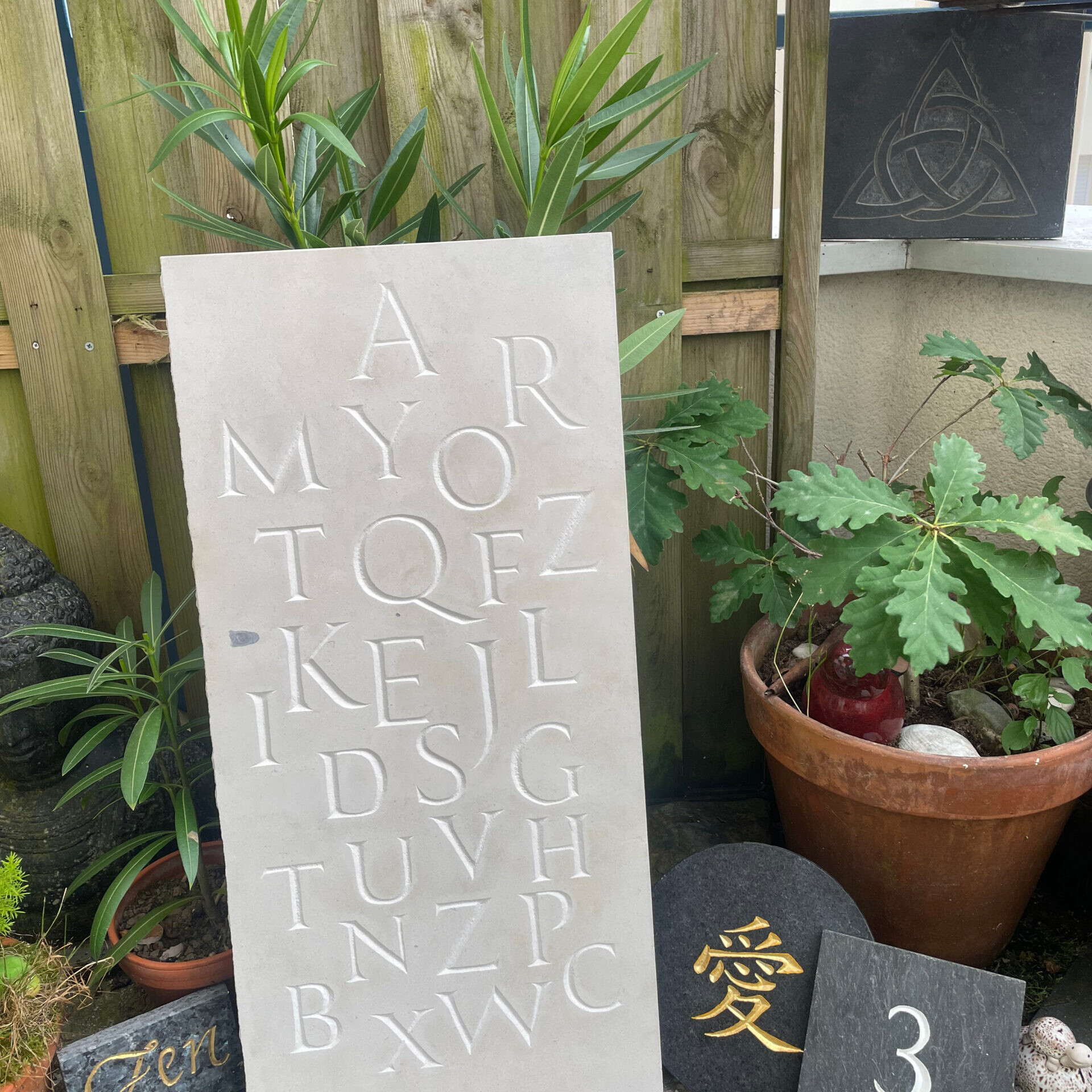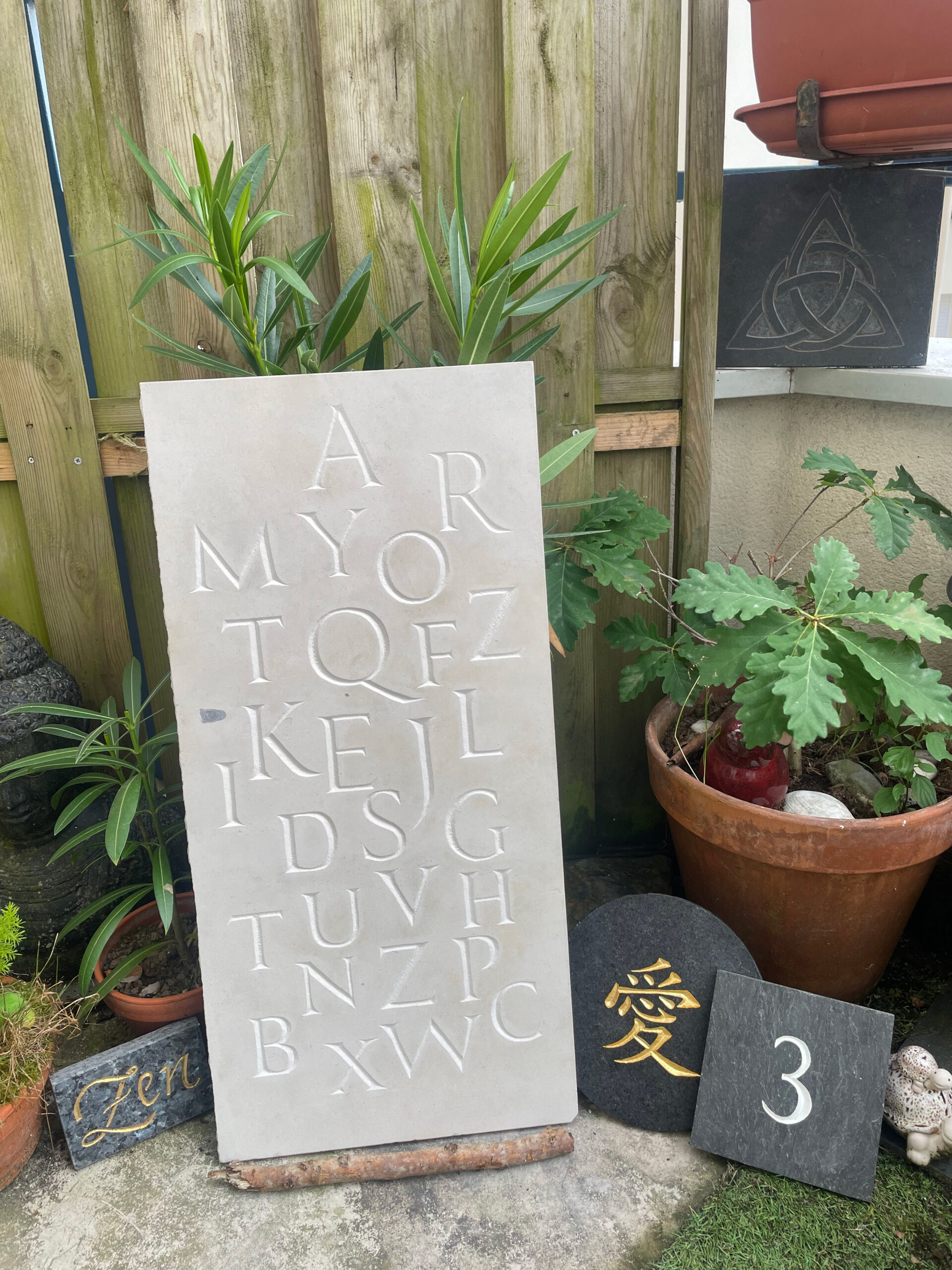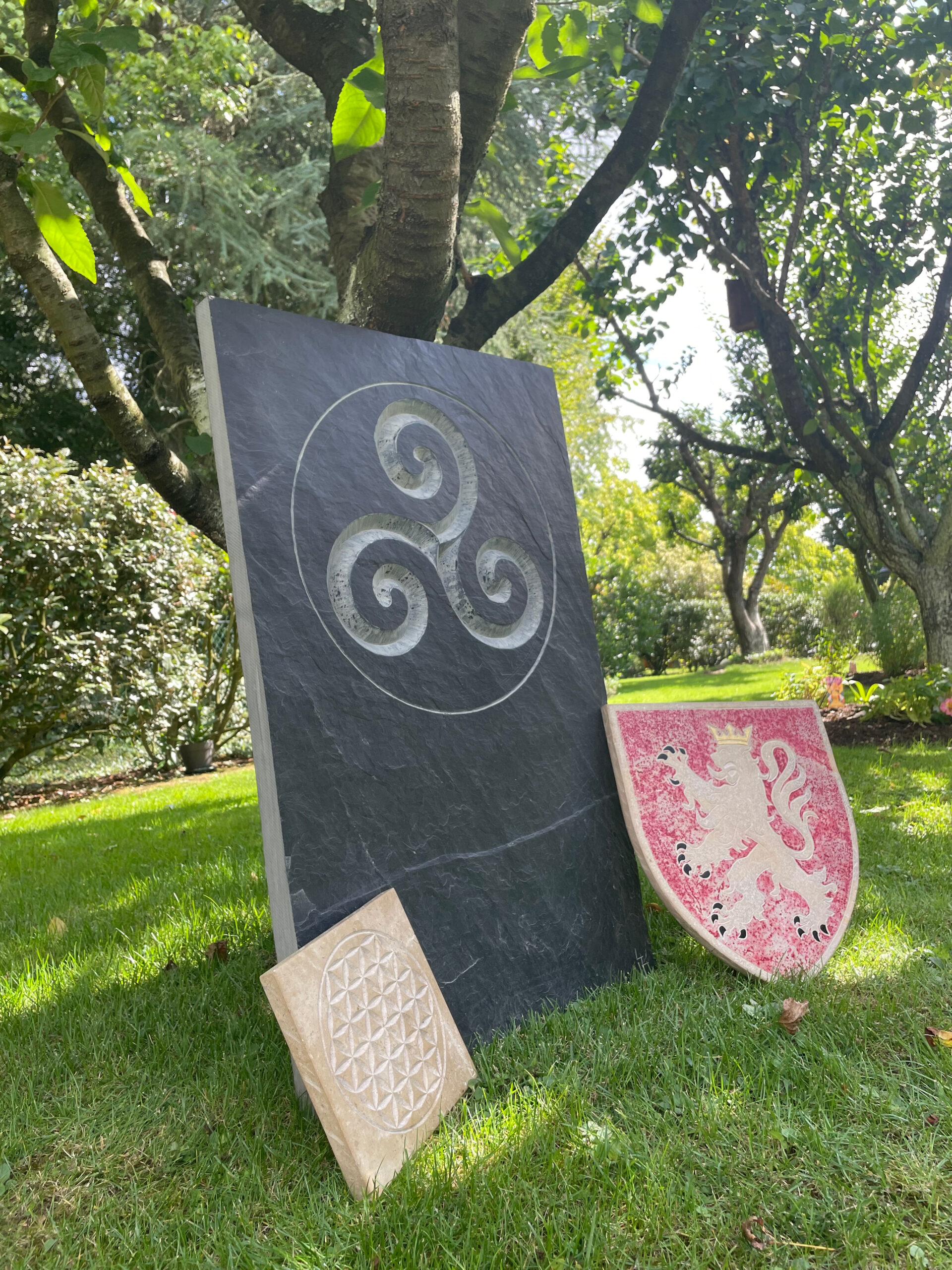 Graveuse sur pierre à la main, je vous propose de mettre en pierre les mots qui vous sont chers. Un prénom, une citation, un numéro de maison...