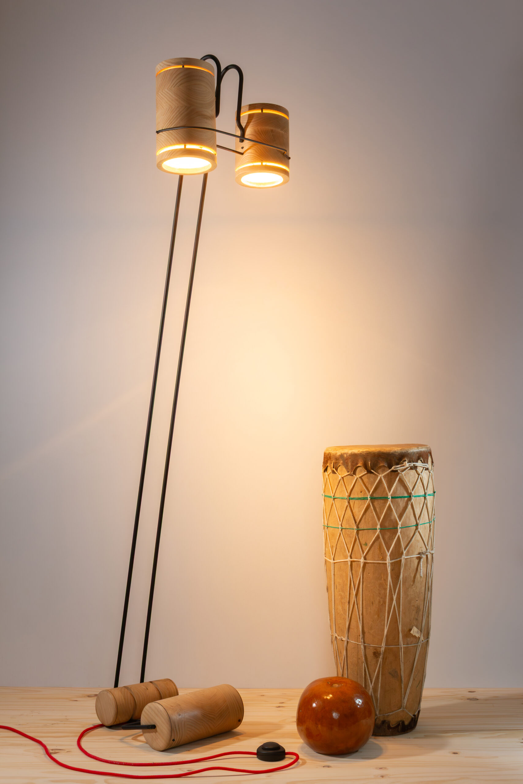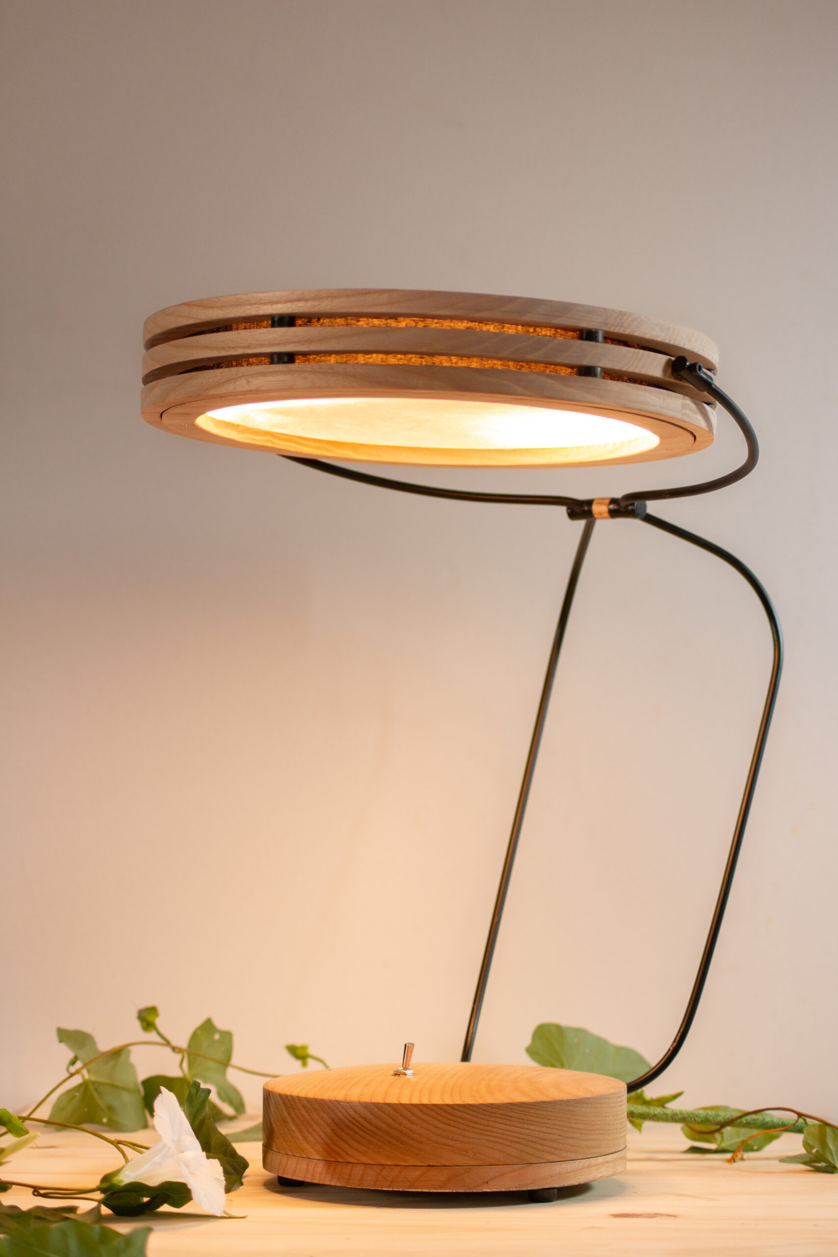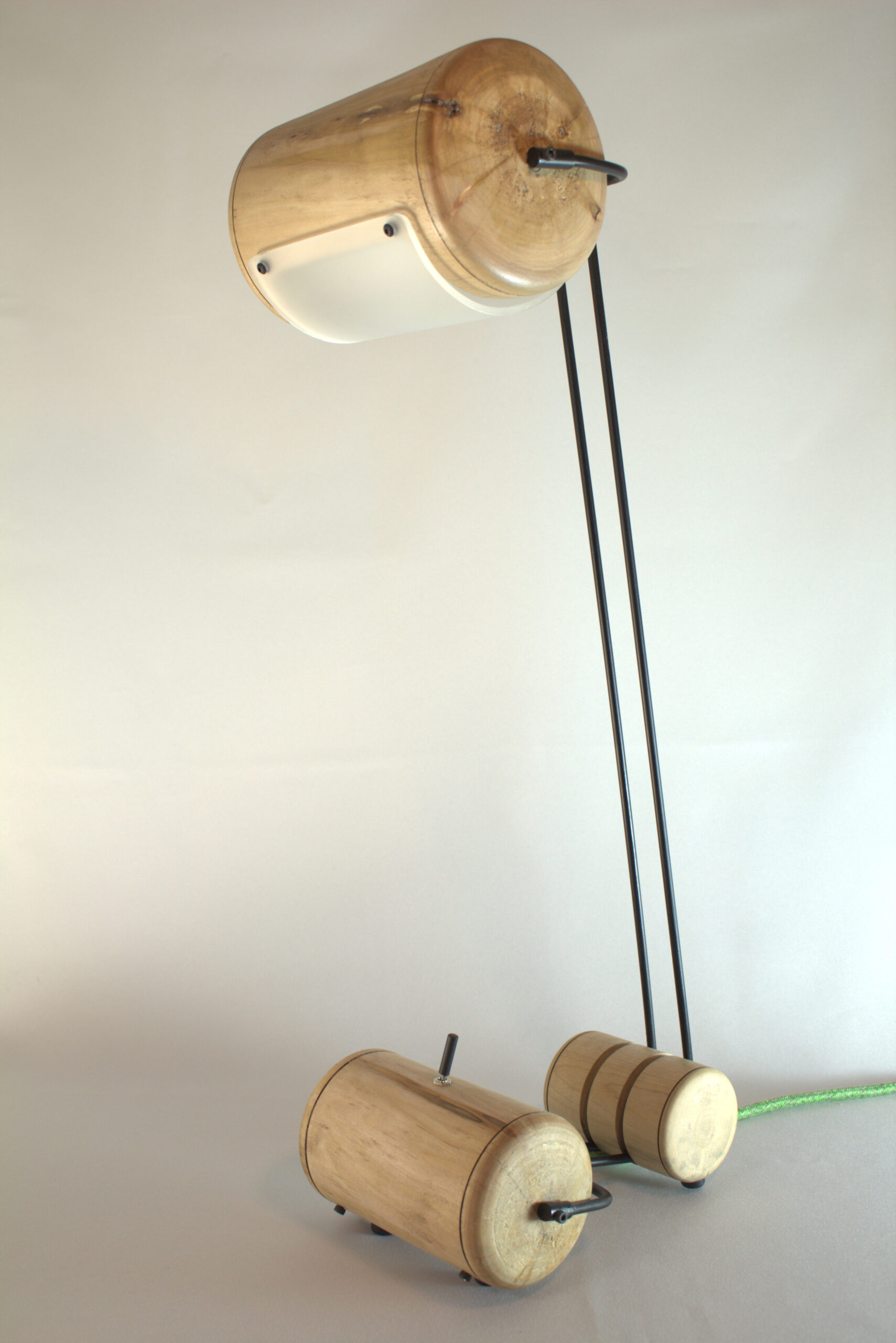 Luminaires en acier et bois. J'utilise le cintrage à chaud de l'acier pour créer les courbes et les formes.Les pièces en bois sont façonnées sur un tour à bois.Les luminaires sont entièrement imaginés, fabriqués et numérotés à la main dans l'atelier.Chaque modèle a trois hauteurs différentes.