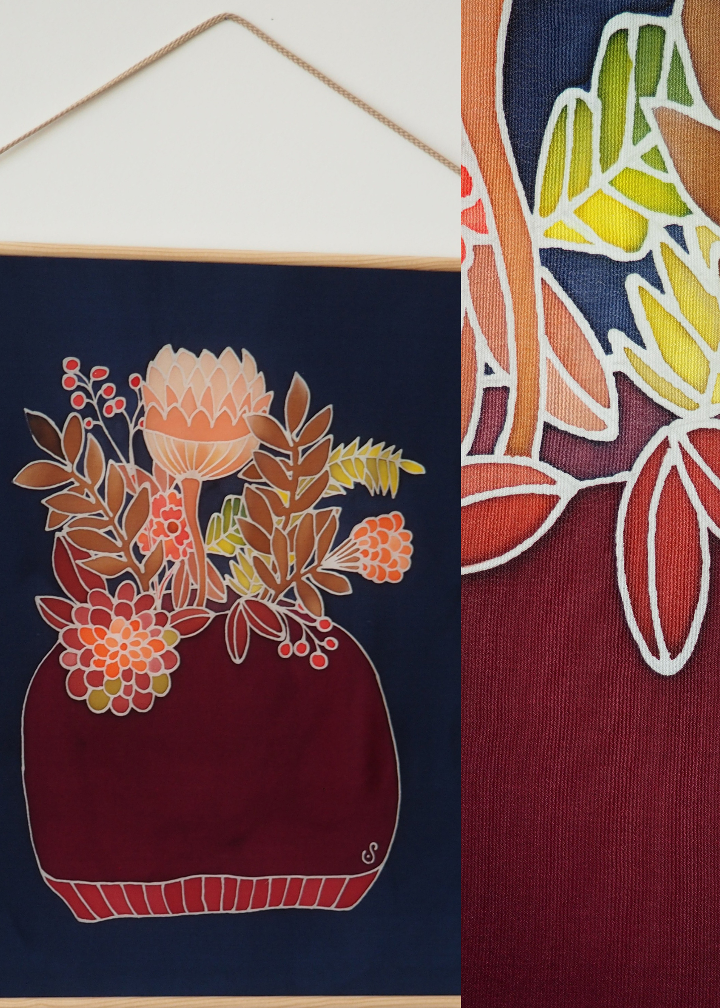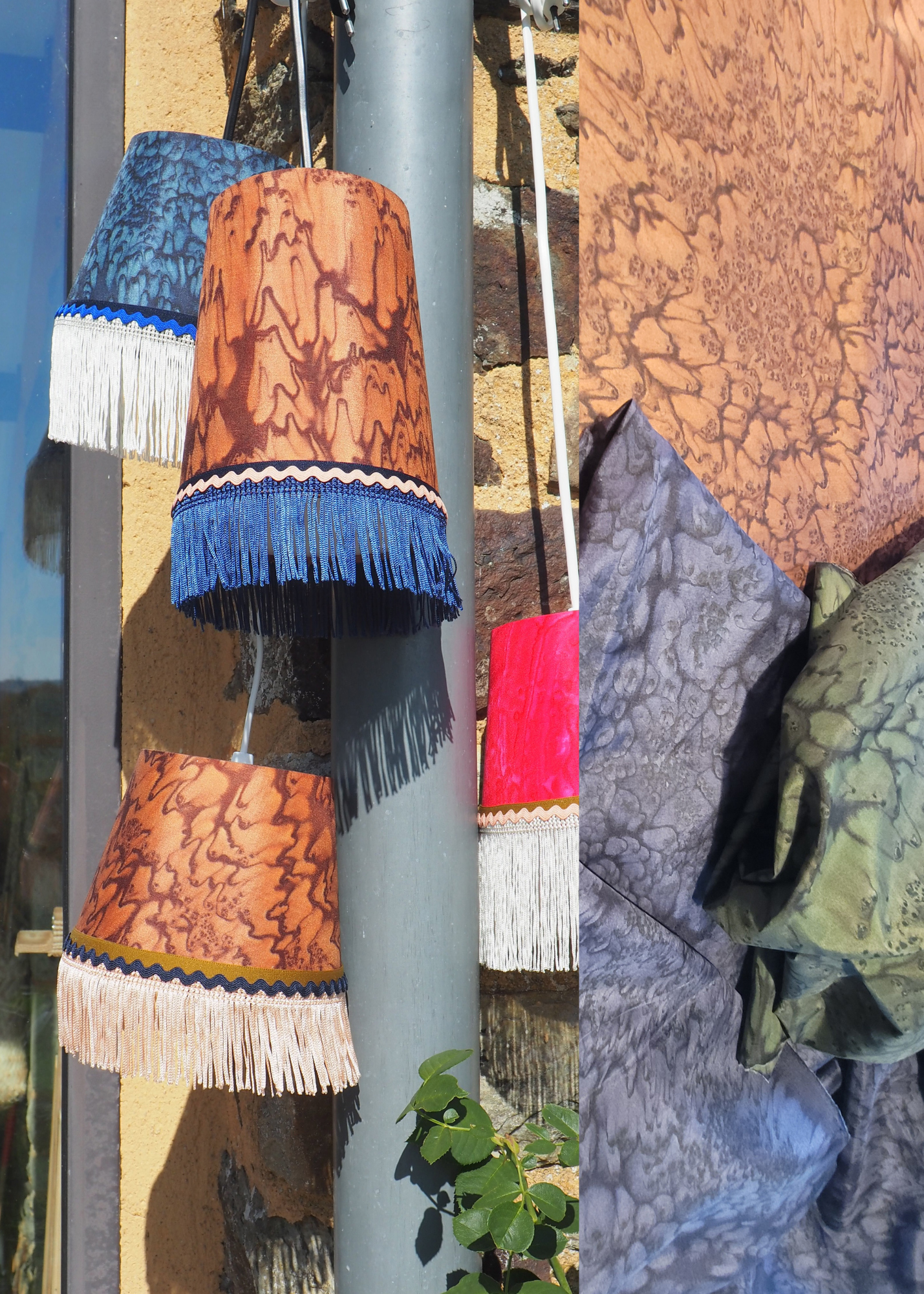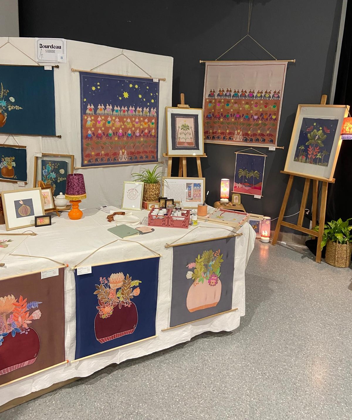 Sandrine, artisane, propose des produits en soie peints à la main (accessoires mode et articles déco).