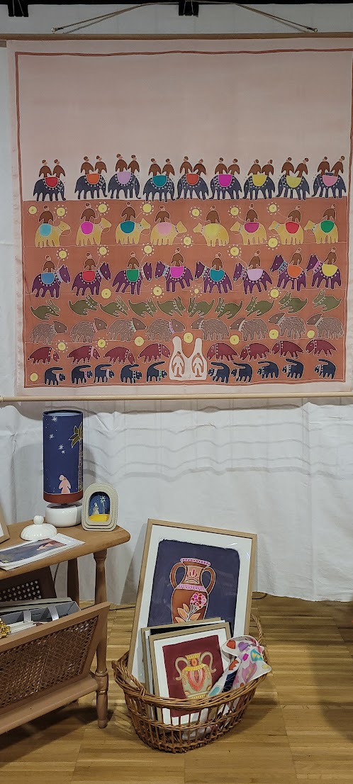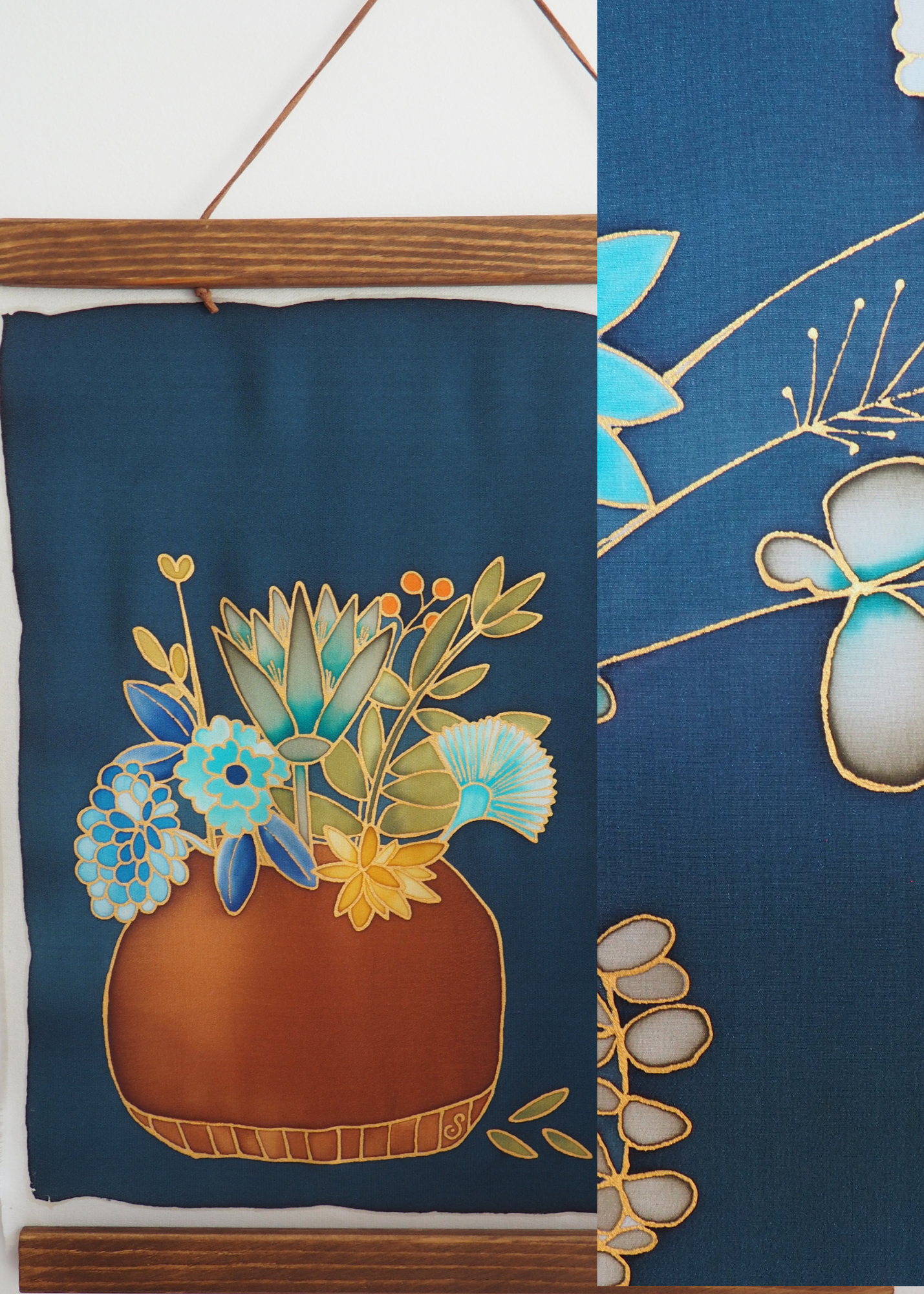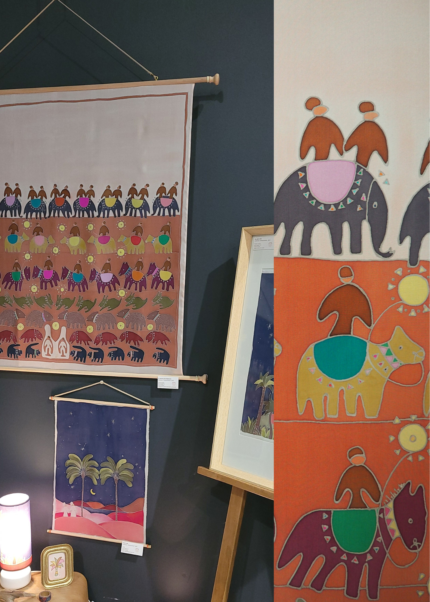 Sandrine, artisane, propose des produits en soie peints à la main (accessoires mode et articles déco).