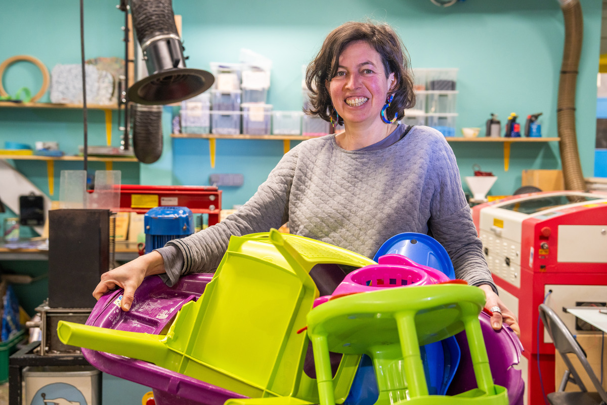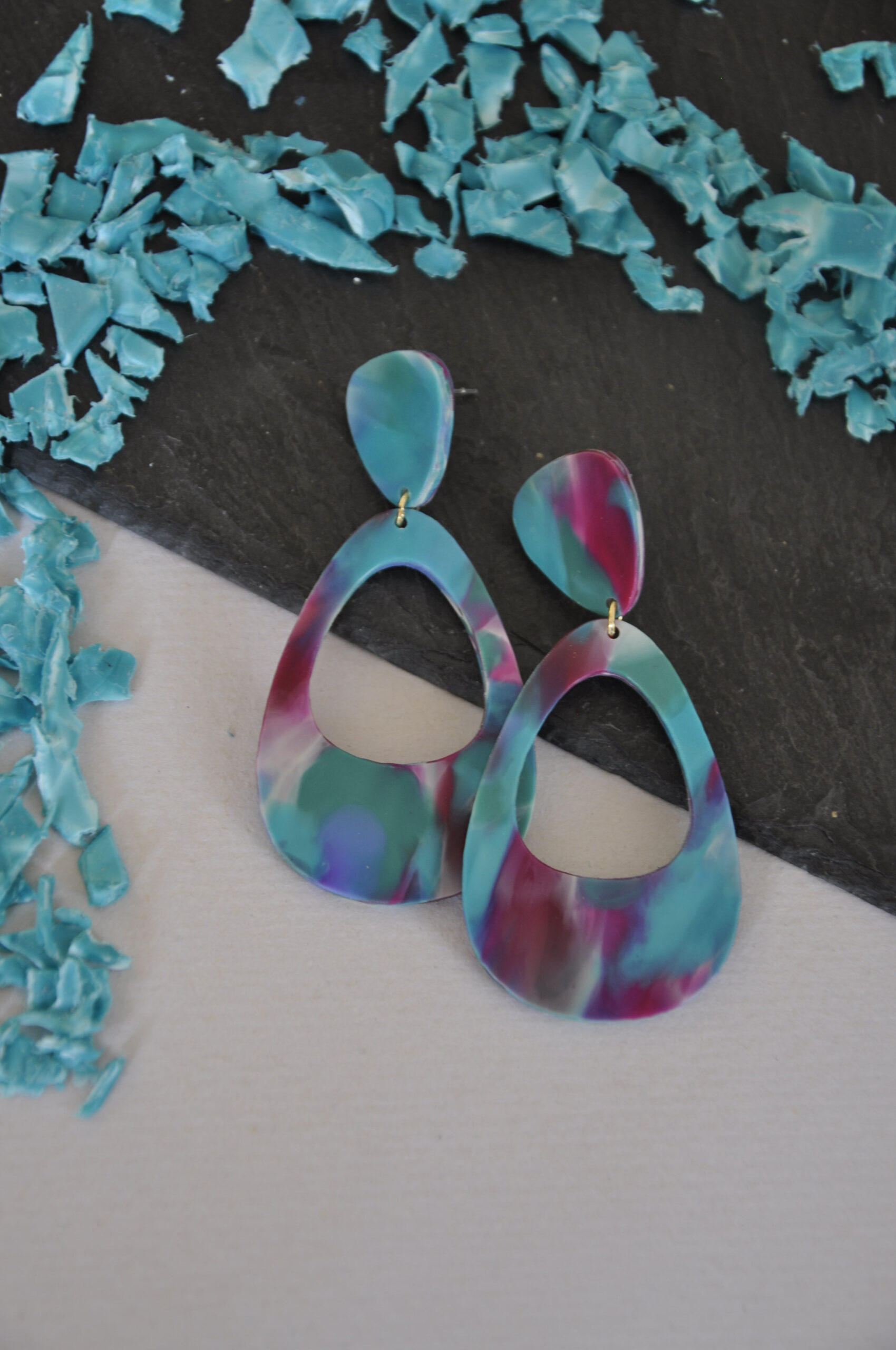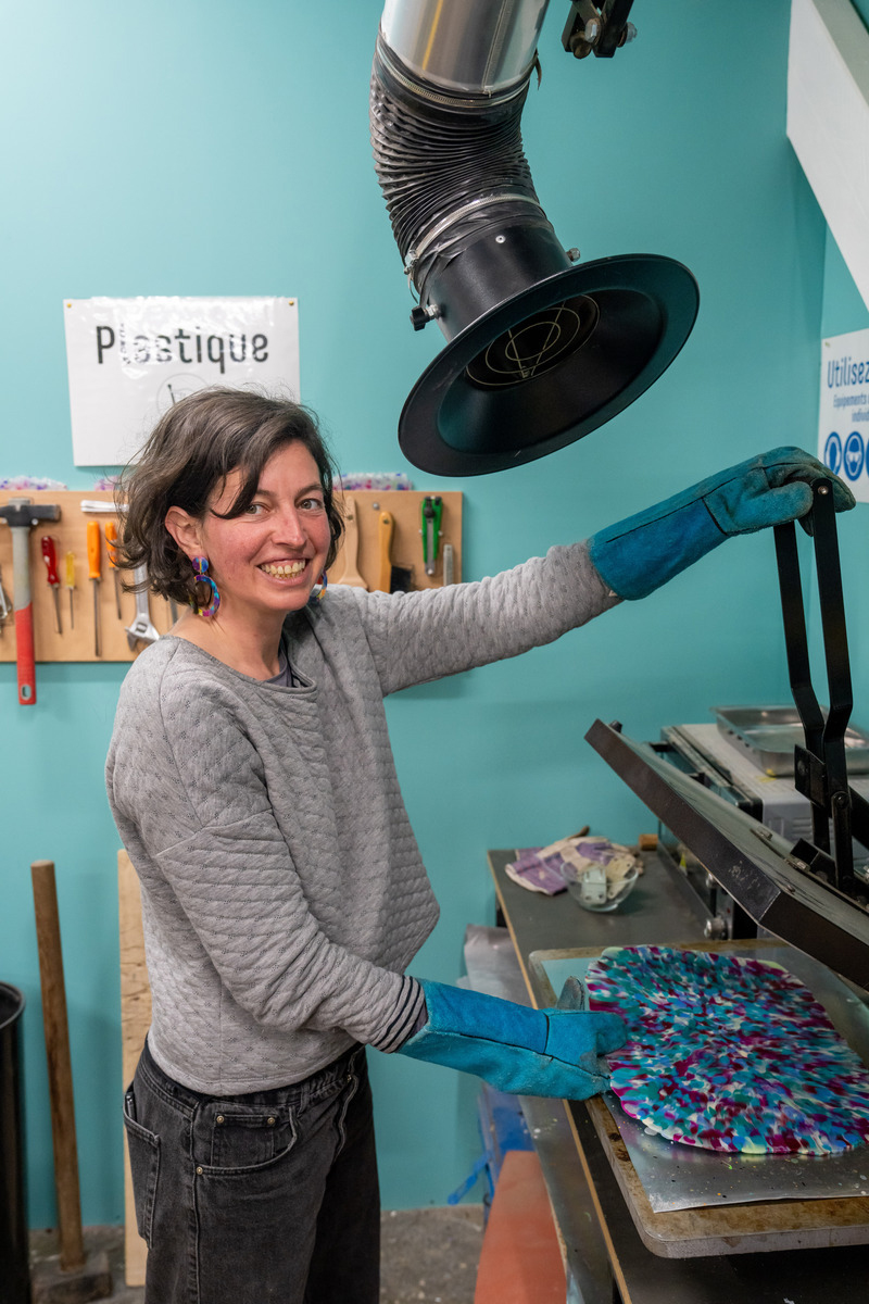 A partir de plastique sauvé de la rue, je crée des bijoux en plastique recyclé.Après les avoir broyé, je réalise des mélanges, puis les refonds en plaque que je découpe à la fraiseuse numérique.Chaque pièce est ensuite ébavurée, limée, polie et percée pour donner naissance à des bijoux uniques.