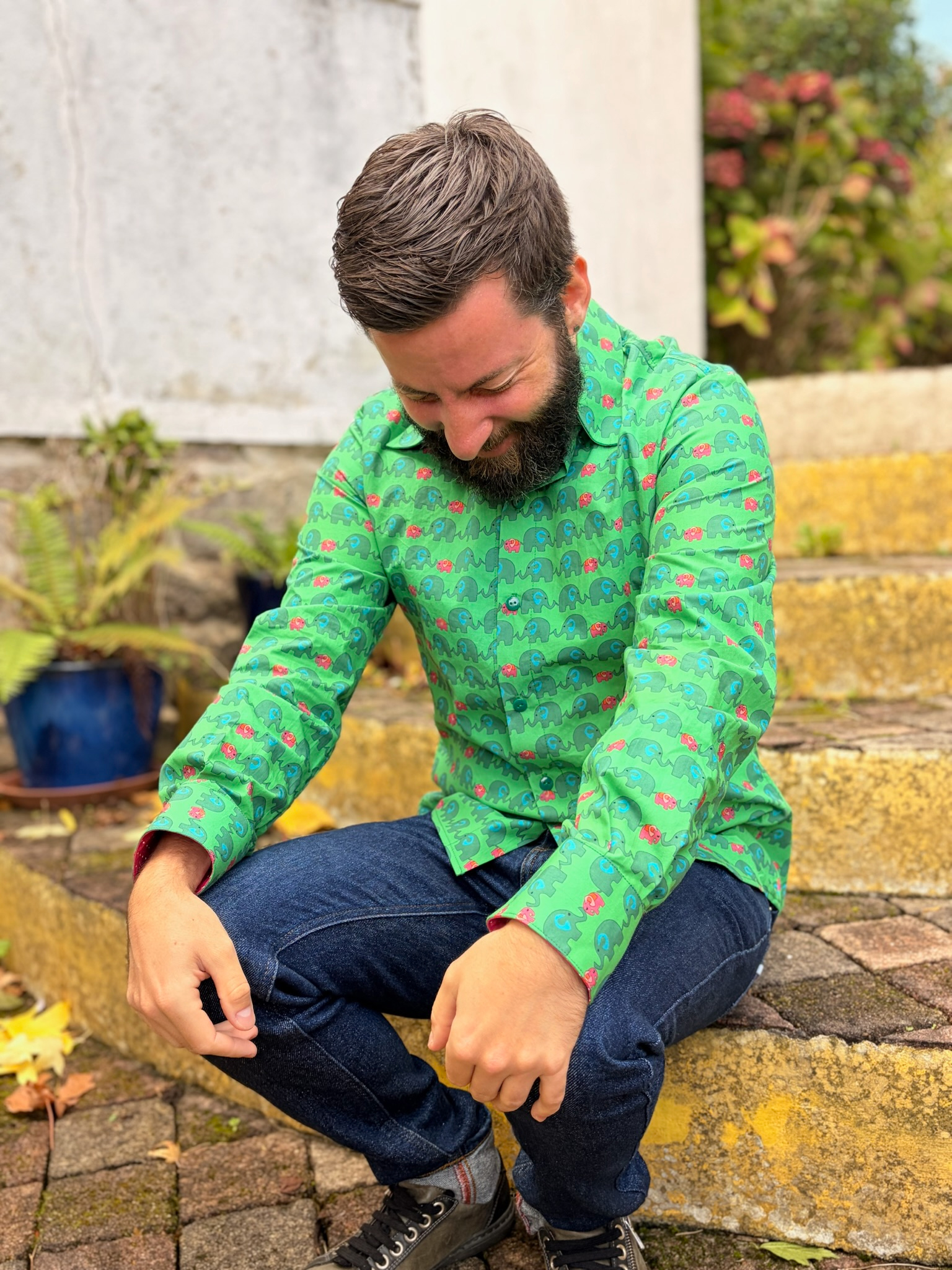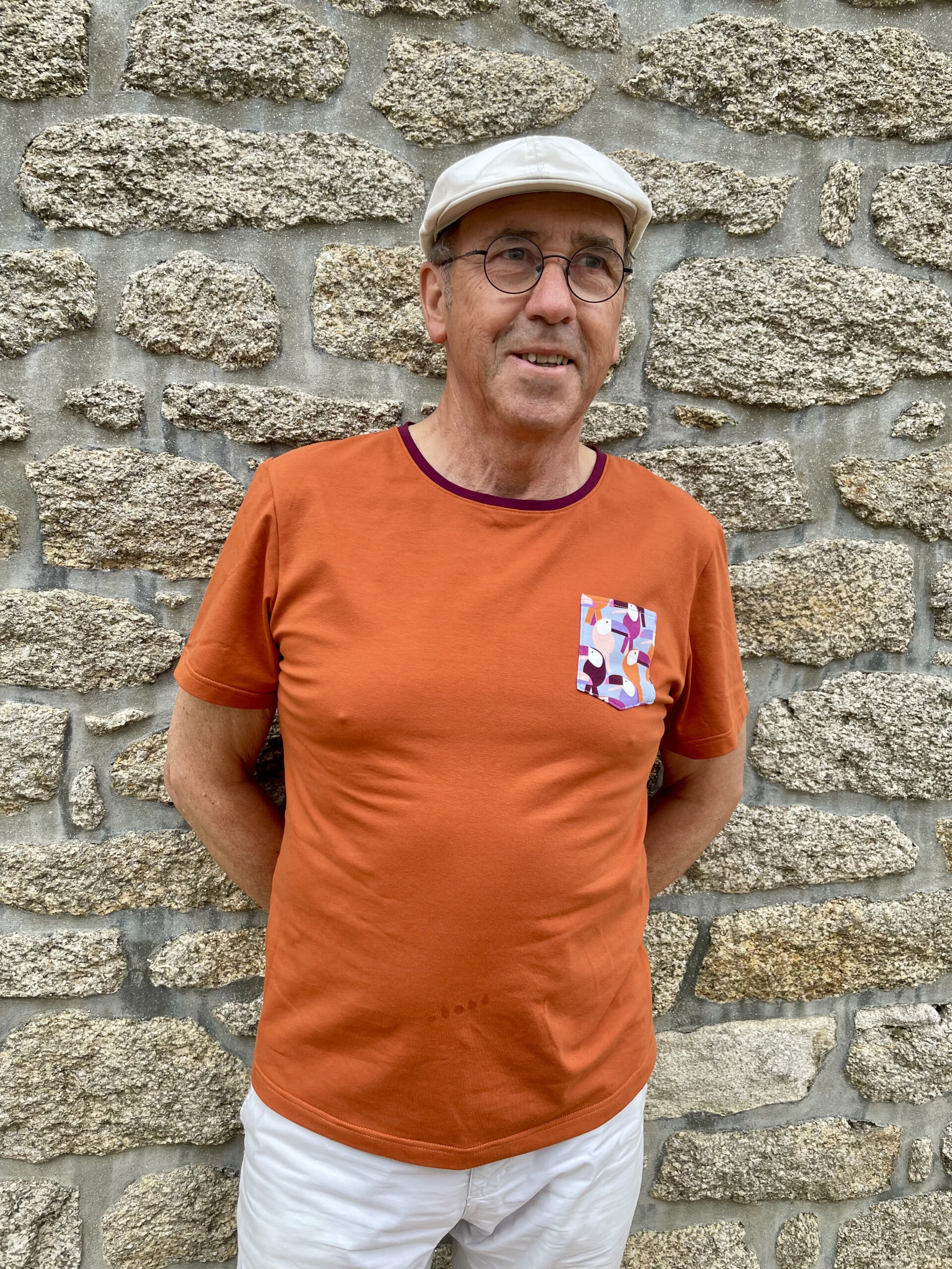 Ainsi je propose des robes, des jupes, des vestes, des sacs, des capes, des culottes, des chemises et gilets pour homme, dans des tissus colorés.