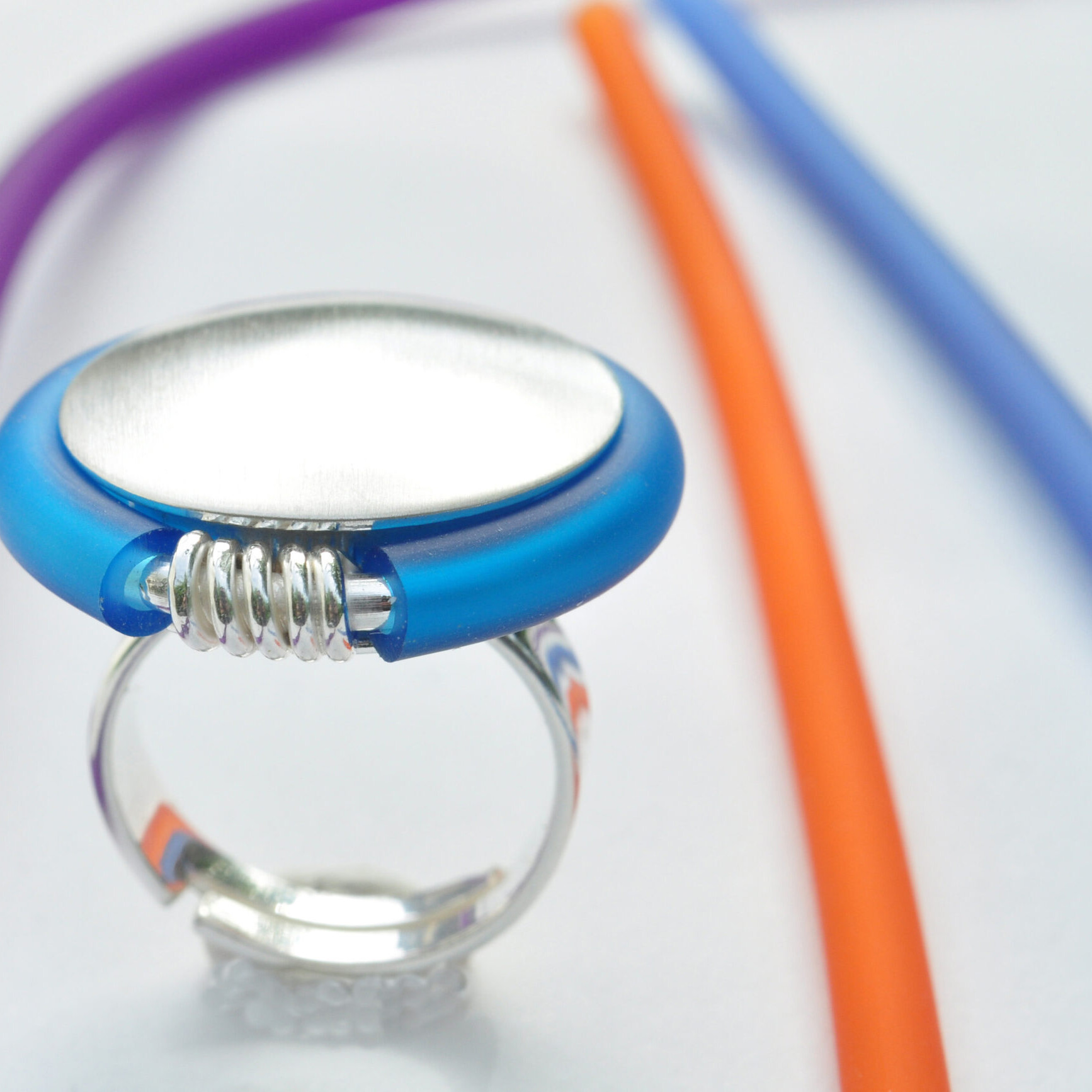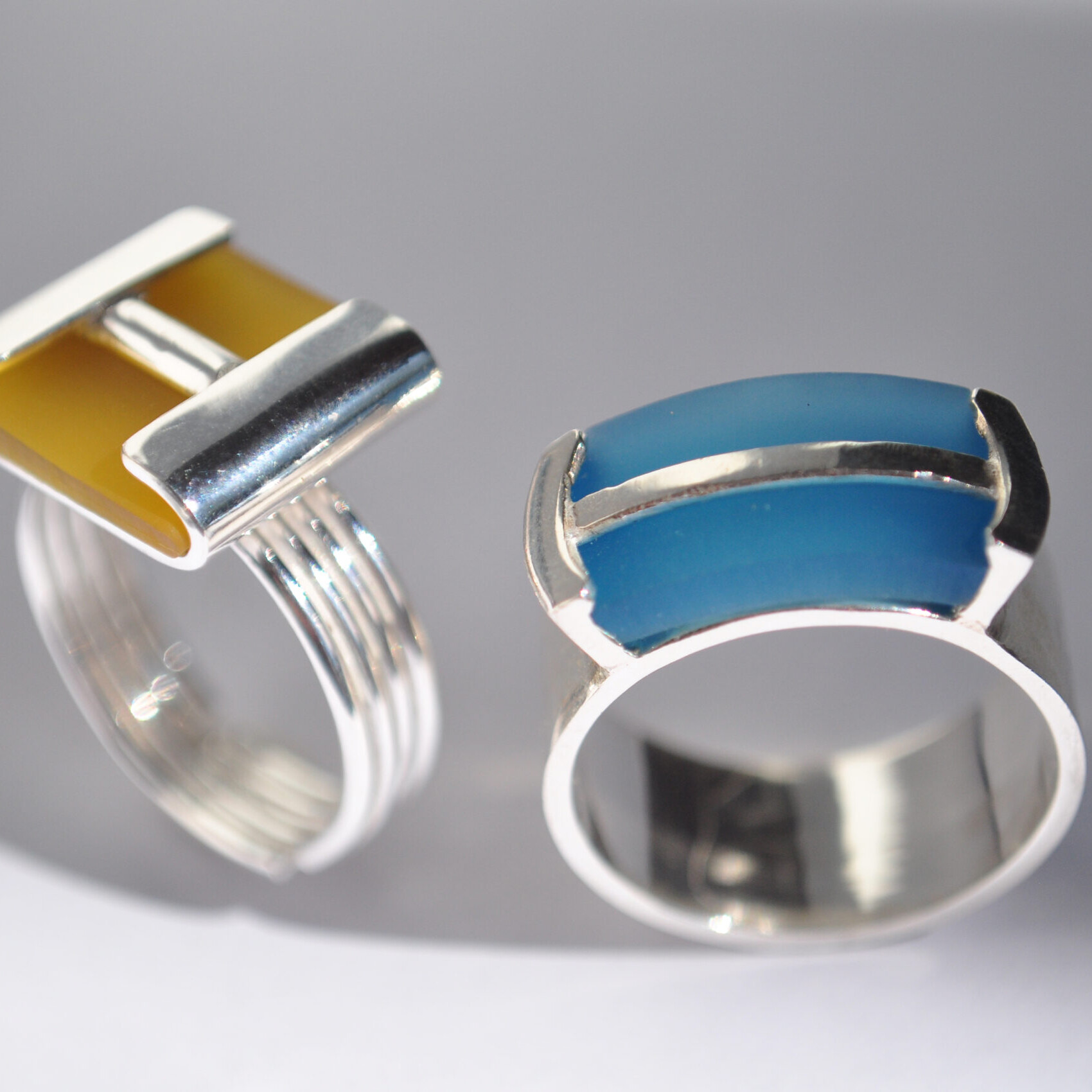 Rouge Métal est le nom de l’atelier de bijouterie d’Hélène et Olivier Payeur au Mans.Anciens orfèvres spécialisés dans la technique médiévale d’émail champlevé, leur recherche de modernité les a menés vers la conception d’une gamme de bijoux en argent massif habillés de bandes colorées interchangeables en matière synthétique.La brillance artisanale de leur technique, héritée de leur ancienne spécialité, se lit dans chaque pièce, dans la qualité des brasures et dans les finitions dignes de la haute joaillerie.Avec leurs couleurs à assortir à vos envies, ce sont des bijoux élégants, faciles à porter et pleinement contemporains.